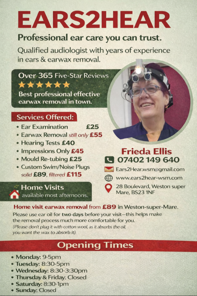 Home visit Earwax Removal (Weston/Worle) £89